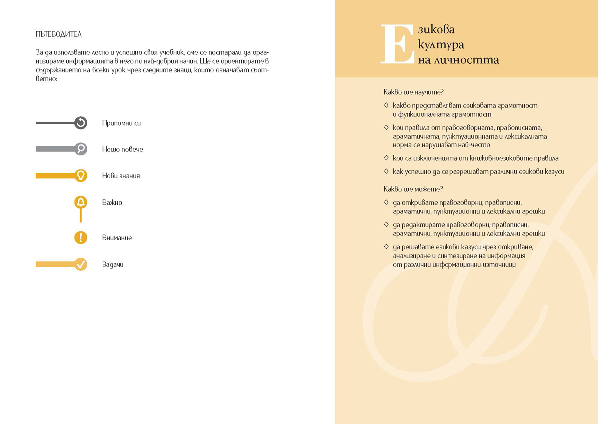• лесно приложими начини за проверка на правоговорната, правописната, пунктуационната, граматичната и лексикалната правилност на текстовете, които учениците създават;