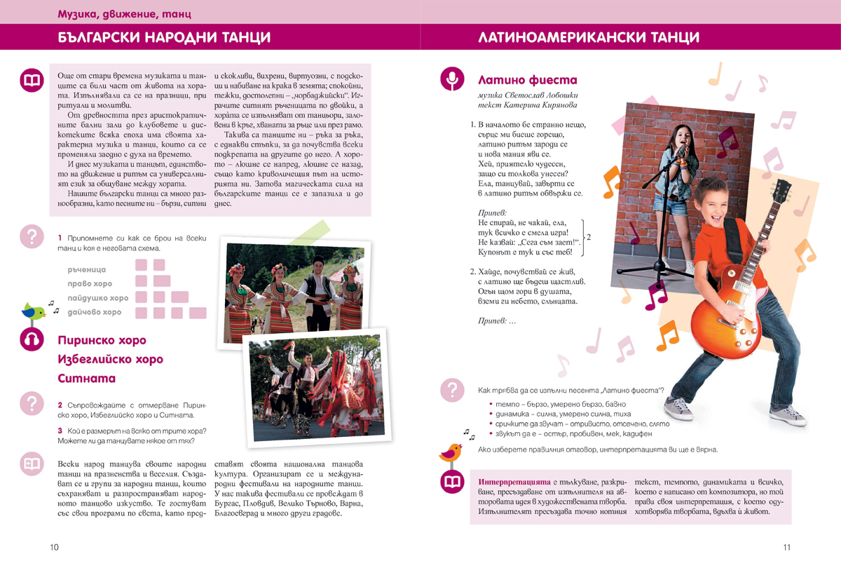 Работата с учебника напълно осигурява постигането на очакваните резултати, определени от учебната програма по музика за 6. клас.