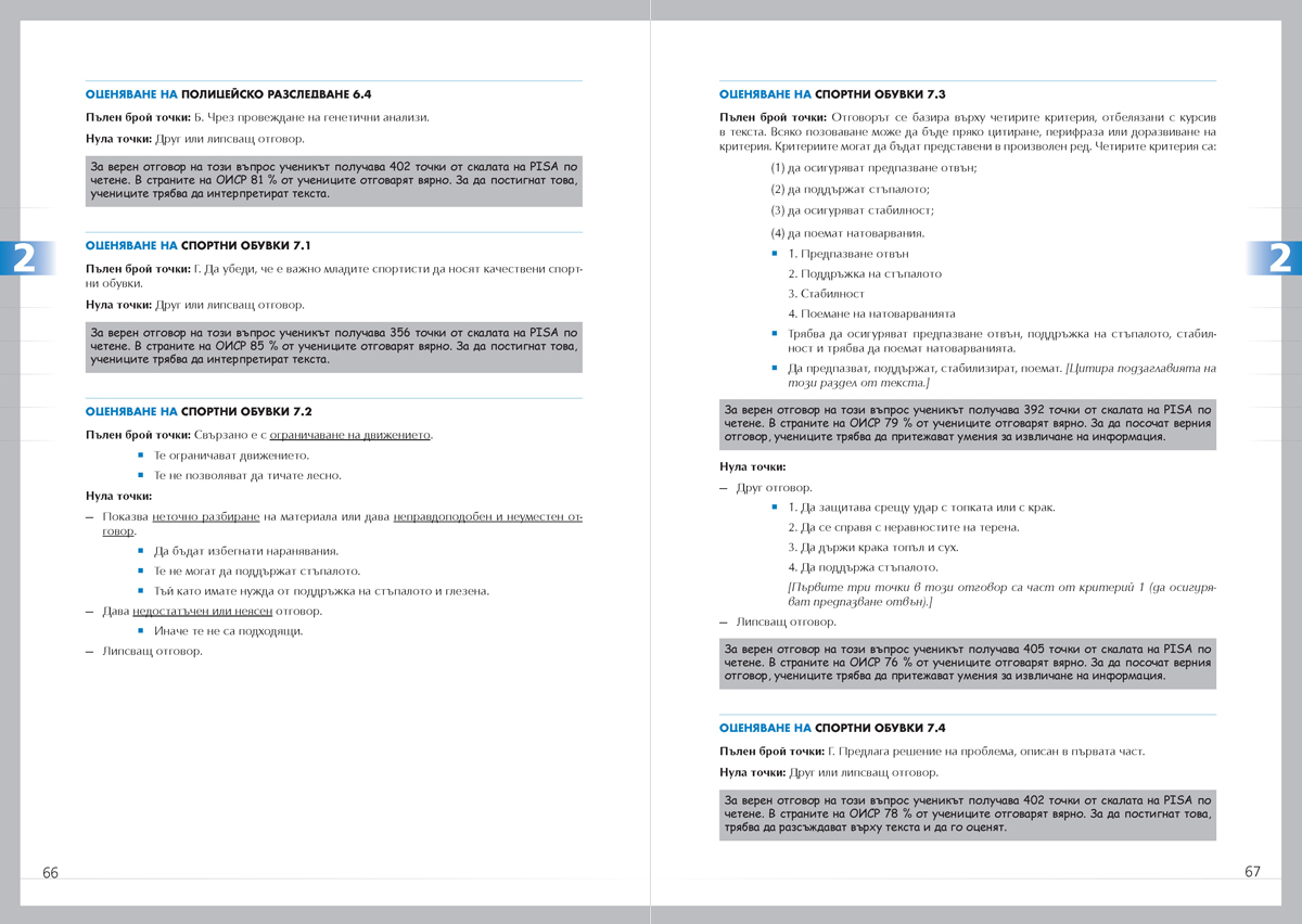 • задачи по четене, които са използвани при провеждането на изследванията PISA 2000, 2003 и 2006 и при разработването и апробирането на тестовете;